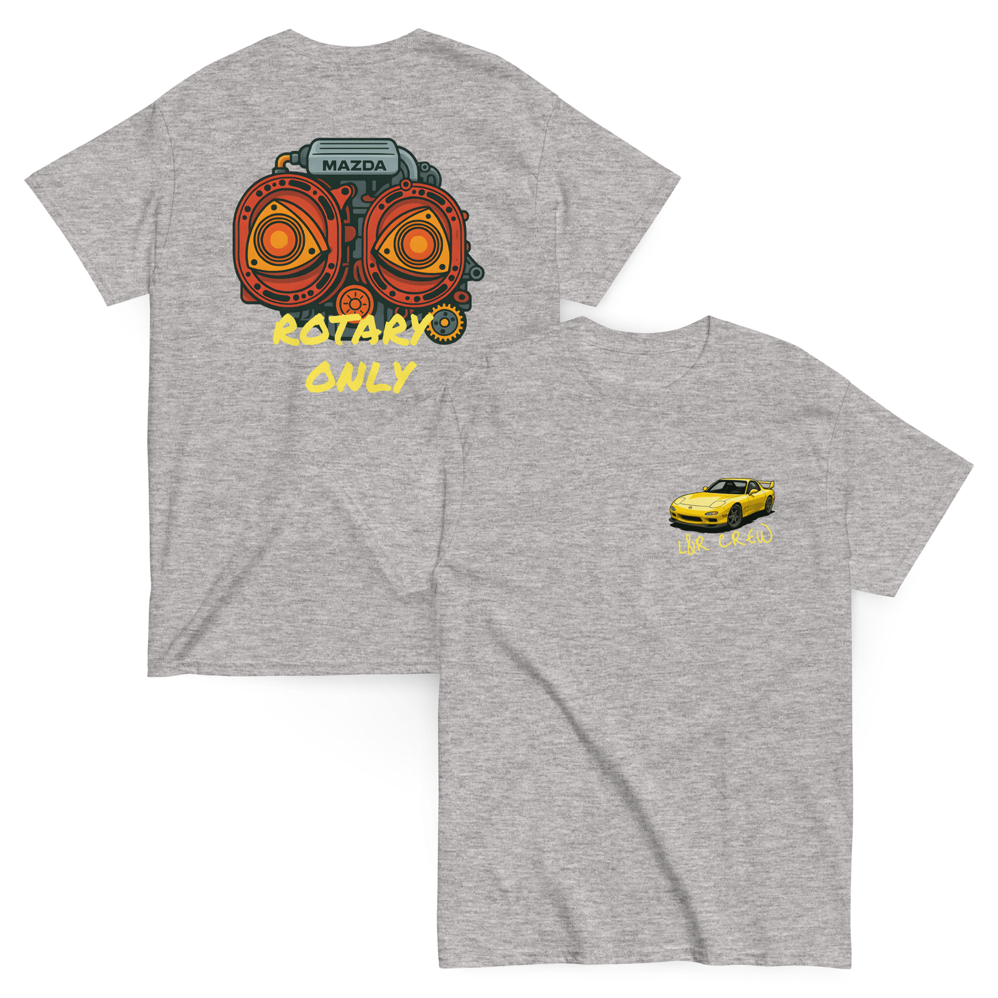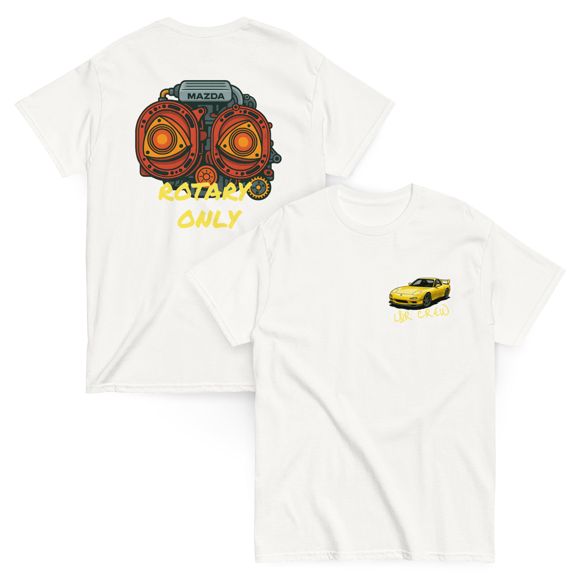 Esta camiseta refleja ese espíritu: postura baja, estilo agresivo y alma de drift, diseñada para quienes saben que el RX-7 no se conduce, se domina.